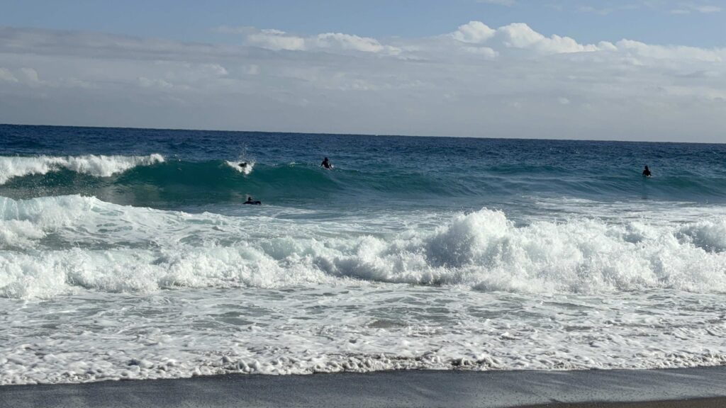 二つ目のポイントに着くと、そこでは島のベテランサーファーたちが、力強く、そしてしなやかに波に乗っていました。