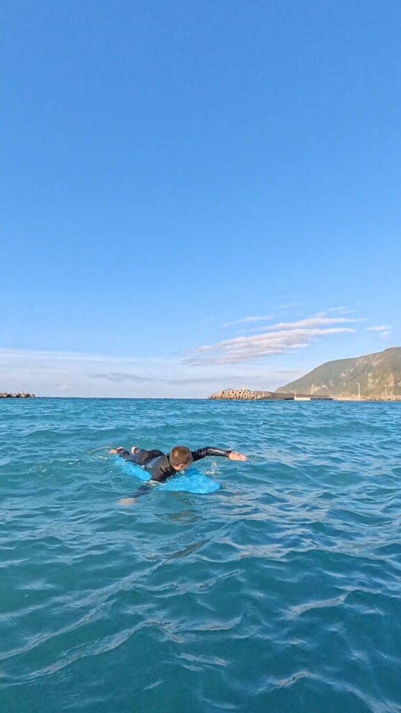 それでも子どもたちは昨日よりずっと、パドルの力の入れ方、身体の乗せ方、波を待つ姿勢がしっかりできていて、成長を自分で感じられたようでした。